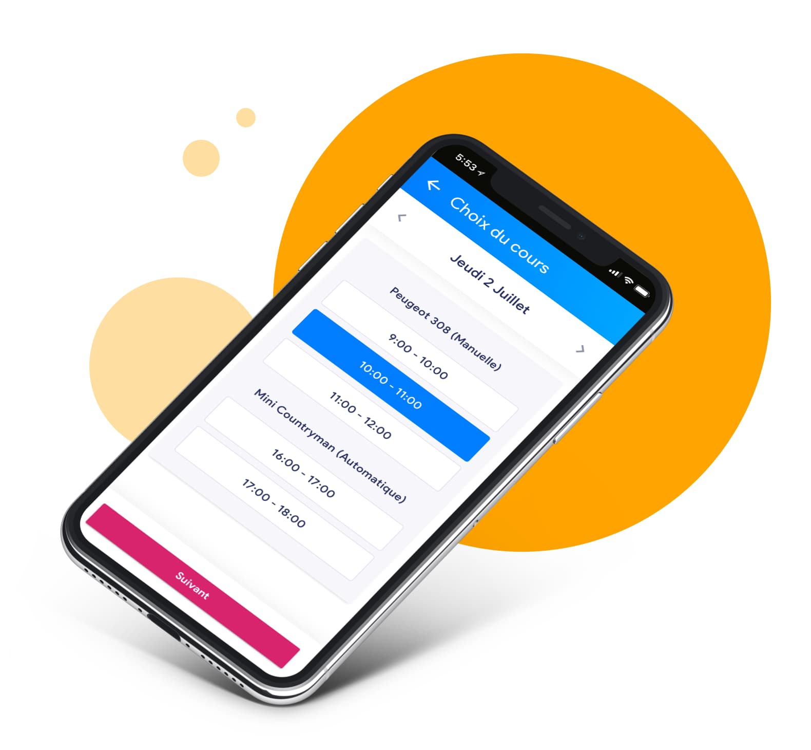 Oui, tu peux réserver et payer ton cours en ligne (conduite, 1er secours, sensibilisation, théorique...) si ton auto-école ou ton moniteur autorisent la réservation en ligne.