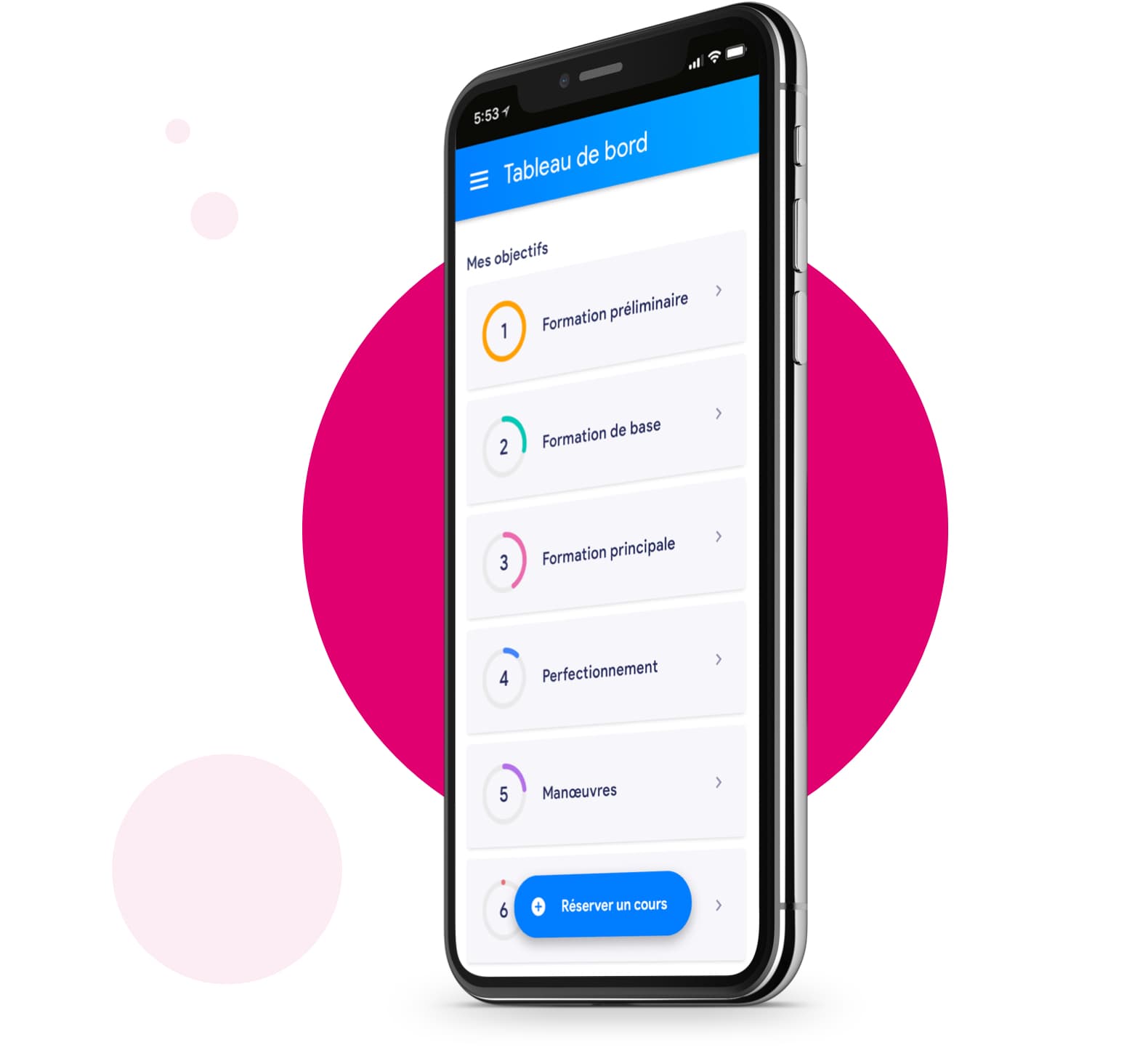 Oui, l'application te permet de suivre ta progression jusqu'au permis de conduire. Elle est alimentée par ton moniteur à chaque cours.